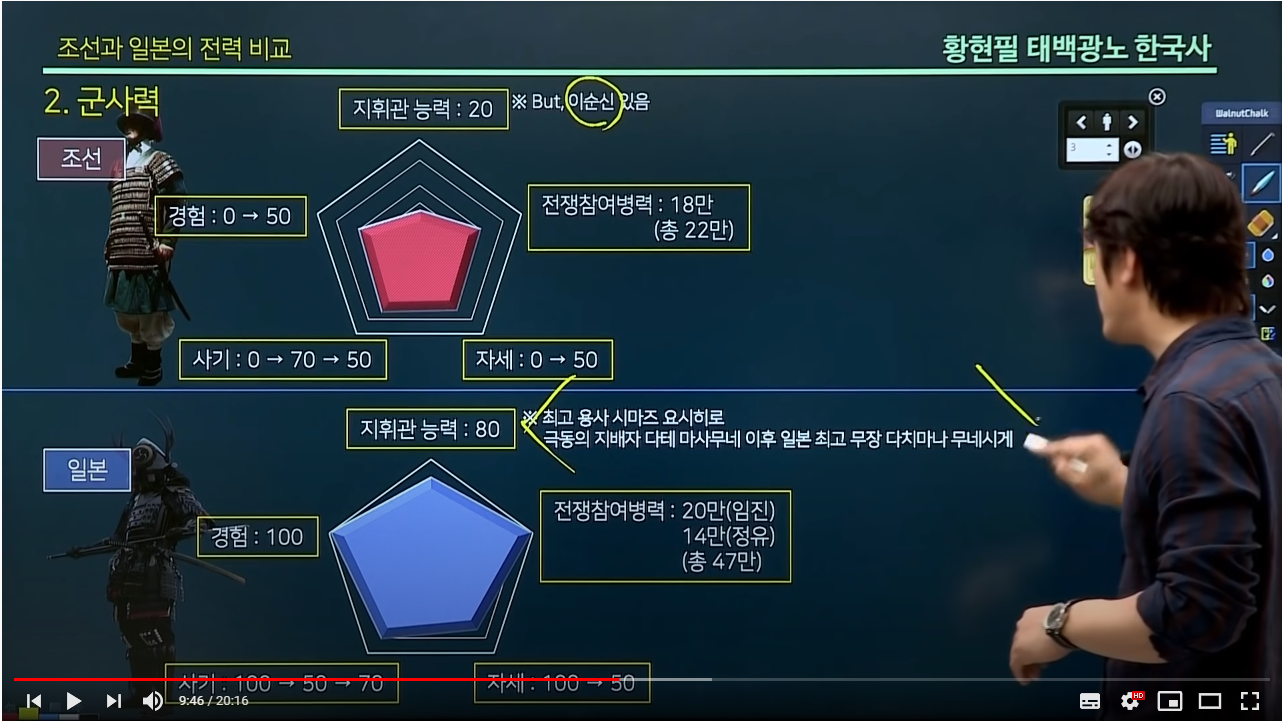유투브에서 자주보는 한국사에 대한 강의 영상 중에 ‘임진왜란’에 대해서 황현필이라는 강사가 강의한 영상이 있다. 이 영상은 한 번 보고 그냥 넘어가기에는 너무 아까운 것이라 이곳에 정리를 해 두려고 한다.