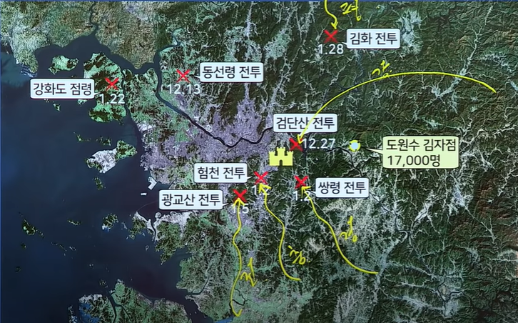 광교산 전투는 판교의 도도와 분당의 양구리가 수지의 김준룡과 치른 전투다... (지역 이름만 놓고 보면 ‘부동산 전투’가 되겠다)