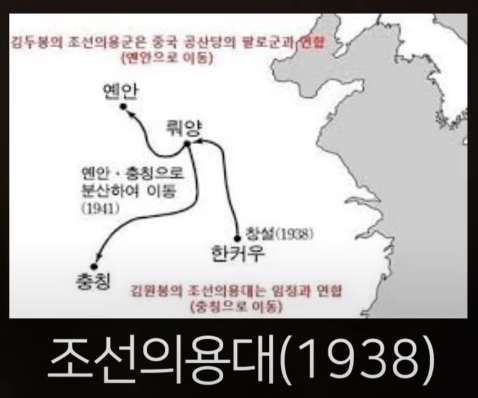 장제스가 인정하는 독립운동가는 김구와 김원봉이다. 1932년 4월 윤봉길 의사의 홍커우 공원의거가 일어났을 때 장제스는 “백만 중국 군인이 하지 못한 일을 조선 청년 한명이 해냈다”라고 감탄하였고, 김구의 상해 임시정부와 함께 하자고 하면서 머지않아 중국 관내에 무장단체를 만들어 주겠다는 약속을 하였다. 이 약속을 믿고 김구는 이후 8년 동안 장제스를 따라다닌다. 결코 쉽지 않은 세월을 장제스의 비위까지 맞춰가면서 따라다닌 결과 1940년 충칭에서 ‘한국광복군’을 창설할 수 있었던 것이다. 김원봉은 사회주의자이고 의열단이었는데 의 열단원을 장제스가 교장이었던 황포군관학교에 유학을 시키기도 하였으며, 장제스는 김원봉을 인정하고 있었다. 그래서 장제스가 난징에 조선혁명간부학교를 만들게 하고 김원봉을 교장으로 앉히기도 했다. 그리고 김구 보다 먼저 무장단체인 조선의용대를 만들도록 허락하였다(1938년). 김원봉은 이후 김두봉이 북쪽의 마오쩌뚱에게 합류했을 때 김구와 장제스가 있는 충칭으로 합류하였다.