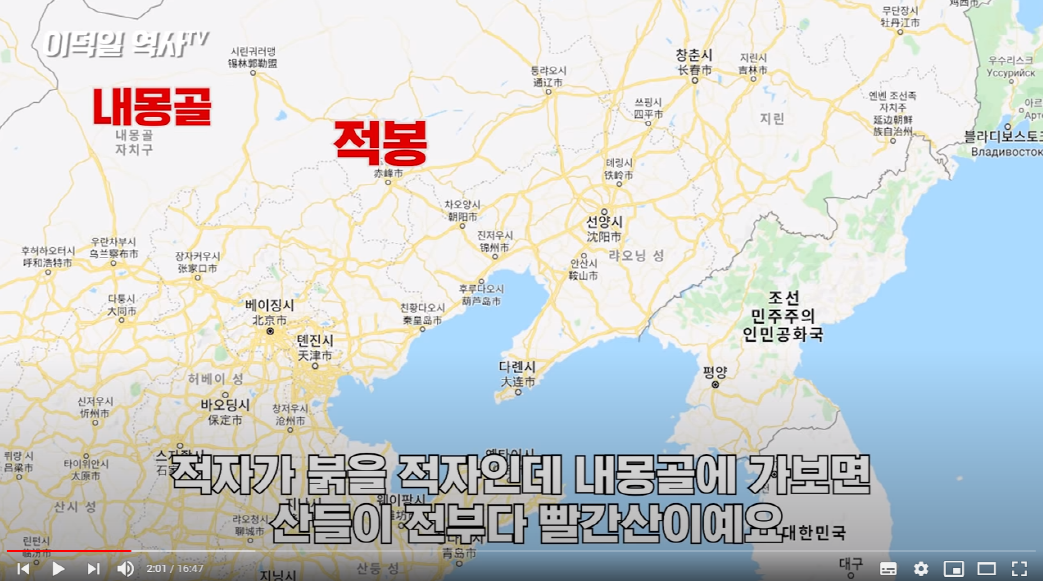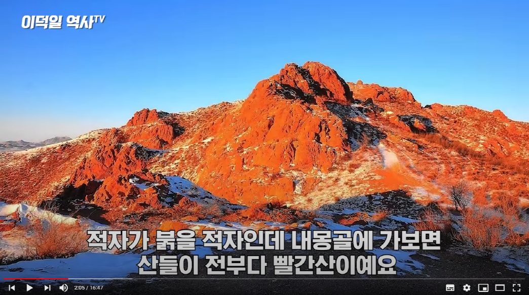 내몽골에 가면 내몽골의 적봉이라는 도시가 있다. ‘적’자가 붉을 적(赤)자인데 내몽골에 가면 산들이 전부 다 빨간산이다. 그래서 적봉이고... 홍산도 붉을 홍(紅)자를 쓰니까 붉은 것을 상정해서 홍산문화라고 부르게 된 것이다.