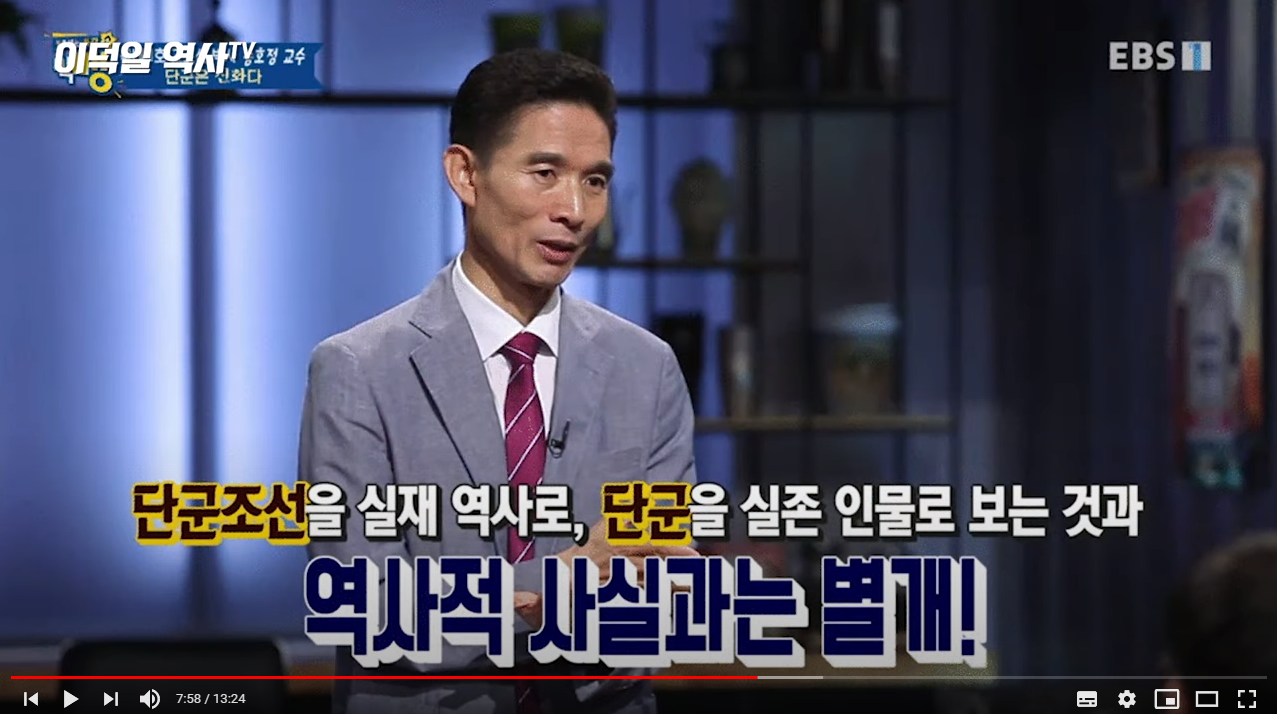 지난번 EBS 방송에서 개천절(10월 3일)을 전후해서 한국교원대 교수를 특별출연시켰는데, ‘단군이 신화’라고 주장하였다. 해방된지, 광복된지 70년이 훨신 넘었음에도 불구하고 외형과 말은 한국어이지만, 논리는 일본 식민사학자를 따라하고 있는 형편이다.